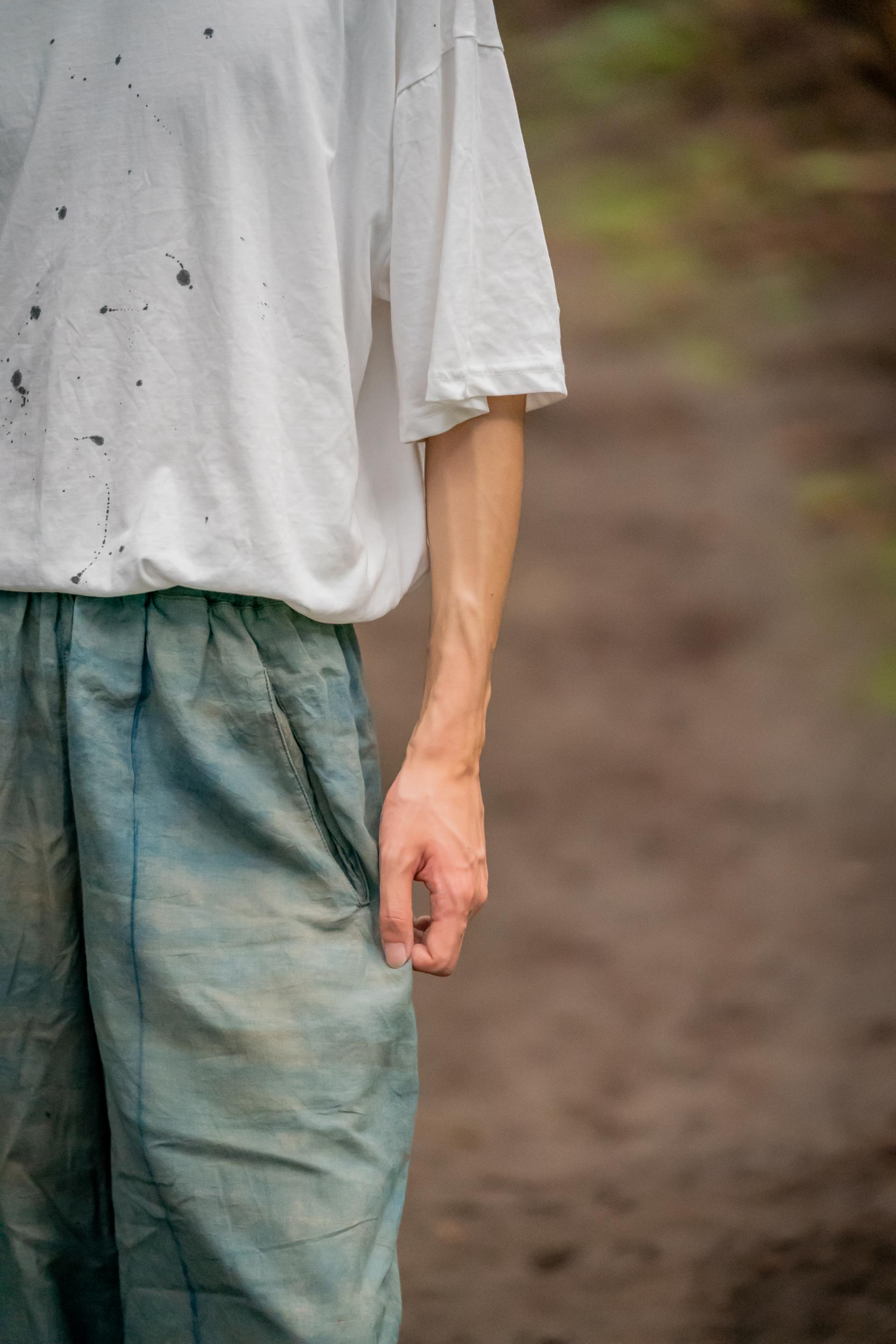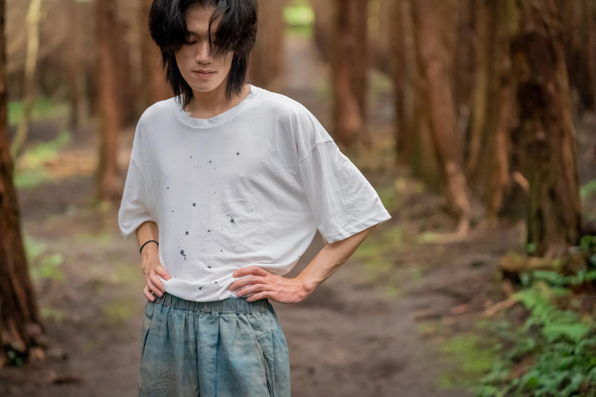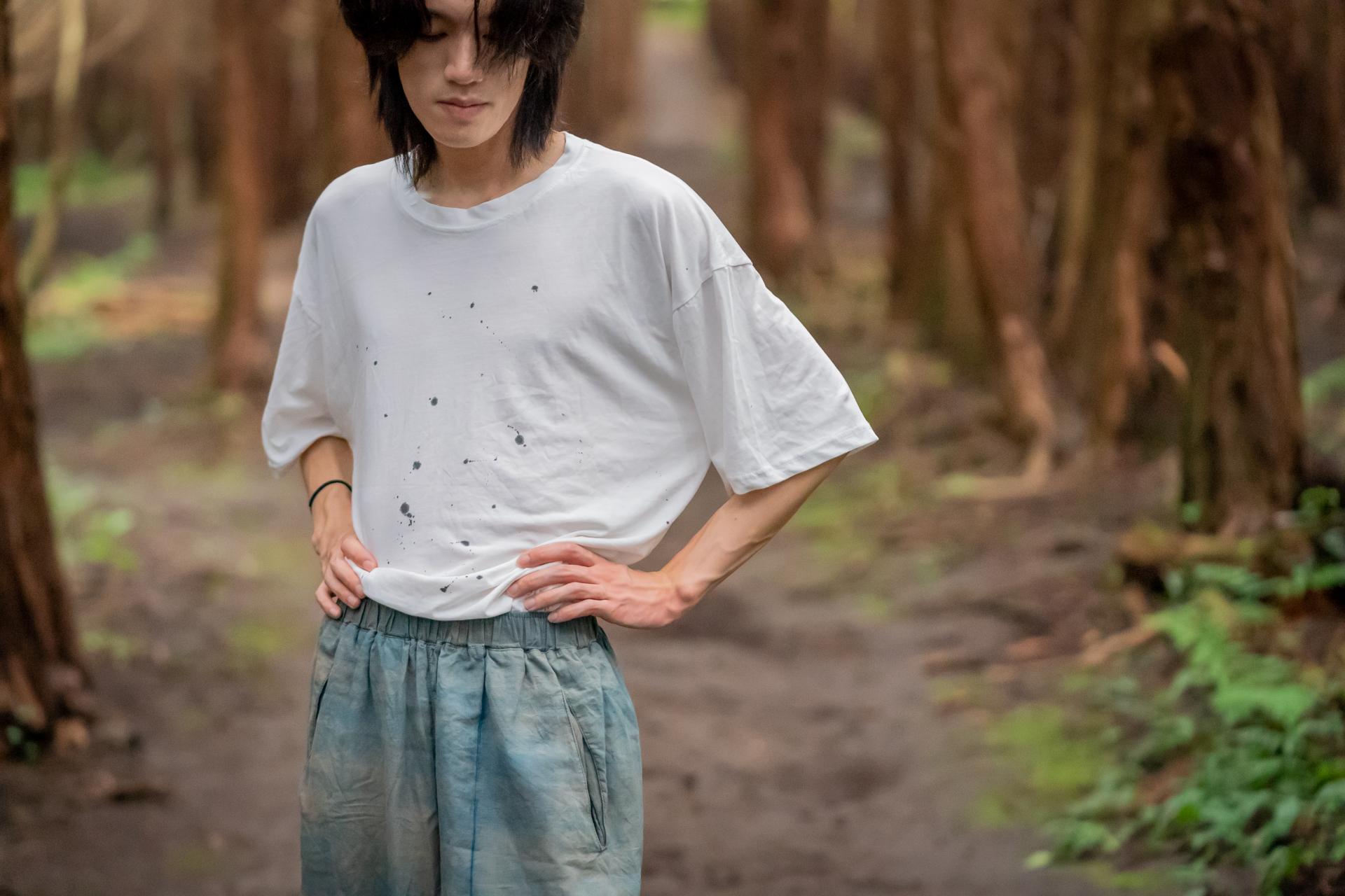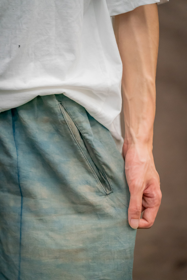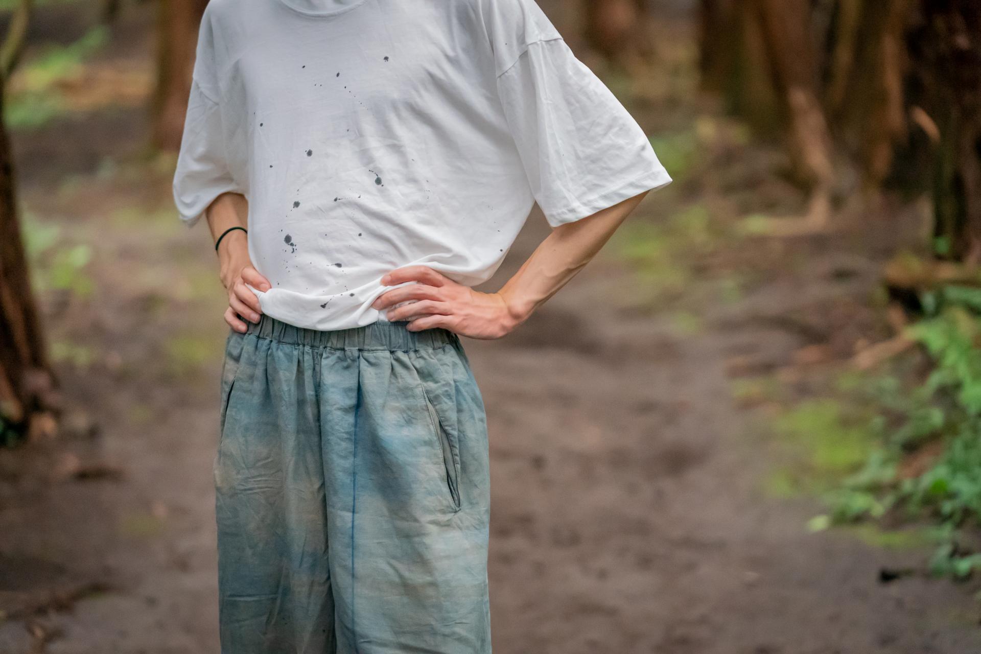 색이 고르지 않고 조금씩 다른 건 천연염색의 특성이에요. 감물은 시간이 지날수록 깊어지고, 쪽염은 하늘색부터 짙은 남색까지 자연스럽게 번져나가죠. 세탁할수록 부드러워지는 드레이프, 원단에 보이는 작은 얼룩과 농담차이는 불완전함이 아닌 자연 그대로의 멋 입니다. 시간이 주는 변화를, 완벽한 색보다 살아있는 색을 담았습니다.