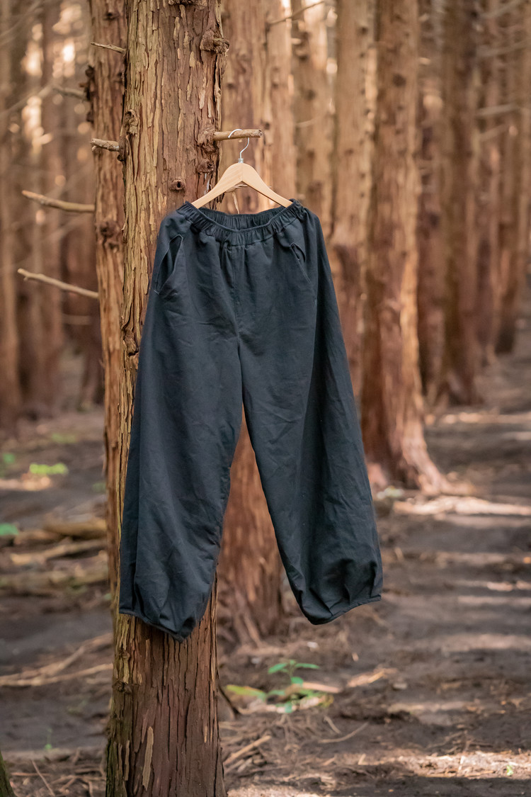 그런 날엔 뭘 입어도 어색하다. 마음이 무거운 날에도 몸은 가볍게 해주고, 아무 생각 없이 입고 나갈 수 있다. 집에서 멍하니 있을 때도, 조용히 산책할 때도 편한 그런 옷. 누군가에게 이 바지는 밝지않아서 오히려 마음에 맞는 그런 산책바지이자 명상바지이자 요가바지가 되길 - 제주에서, 그런 날들을 받아들이며