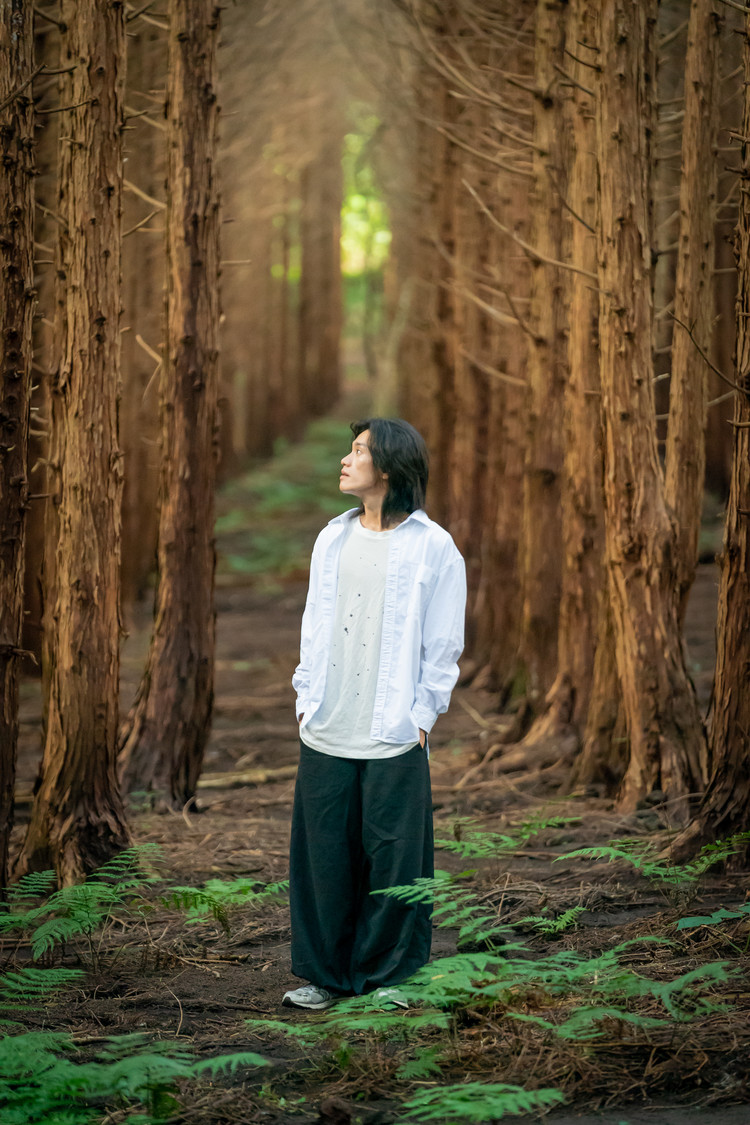 그렇게 해서 탄생한 게 바로 이 산책/명상/요가복이에요. 명상이라고 해서 거창한 건 아니에요. 그냥 이 바지 입고 숨 쉬는 것만으로도 마음이 차분해지면 좋겠다고 생각했어요. 아침에 입으면서 '오늘은 어떤 하루가 될까' 생각하고, 저녁에 벗으면서 '오늘도 수고했다' 하는 그런 소소한 순간들이요.