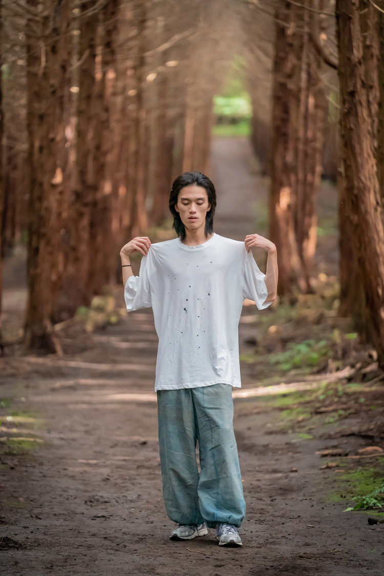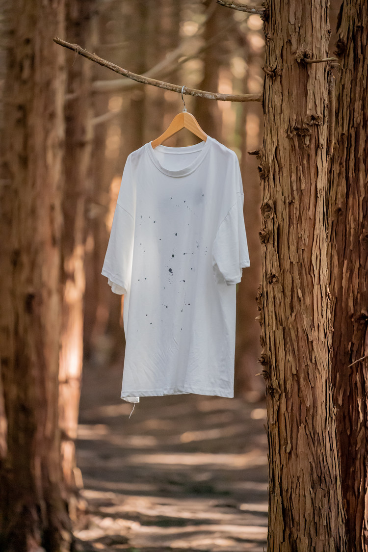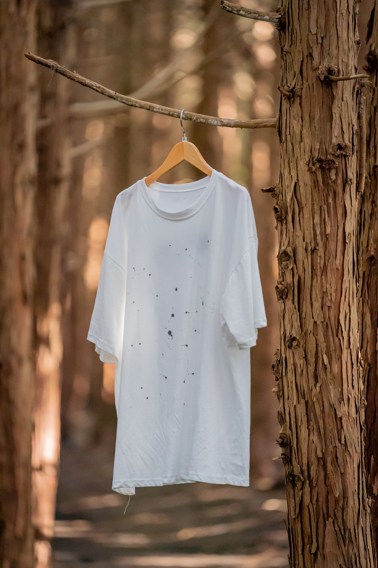 어느 날 집에서 서예를 연습하다가 흰 티셔츠에 먹물이 튀었다. 처음엔 망쳤다고 생각했는데, 며칠 후 다시 보니 그 무작위한 점들이 내가 계획한 어떤 패턴보다 자연스러웠다. 큰 방울, 작은 방울, 흐릿하게 번진 자국들이 제각각의 자리에서 하나의 이야기를 만들고 있었다.